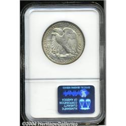 <B>1943-S<50C> MS65 NGC.</B></I> A frosty Gem with amber toning and full underlying luster. <BR><BR><B>Important notice:</B> Heritage usually auctions material at the rate of 200-250 lots per hour. On some occasions eBay Live bid software or the Internet may not be able to keep up with the pace of the auction. We recommend placing a realistic absentee bid now as insurance to avoid disappointment. Occasionally the auctioneer may eliminate or reject an eBay Live bid, and the auctioneer may also reopen a lot after the close of the eBay live bidding (usually because we missed an audience bid), and may reject your bid even if it shows you as the winning bidder. By bidding via eBay Live, you agree that Heritage may award the lot to another bidder at its sole discretion under the circumstances described above or any other reasonable circumstances. Since eBay bids are not shown to us until we open the lot on the floor, we treat those bids just like floor bids. In most cases the floor responds before the eBay bid is presented to us, due to Internet lag time, so for consistency we have made it a policy that floor bids are always considered first over tie eBay live bids. Also please note that all Heritage lots purchased through eBay Live carry a 20% Buyer's Premium. Please make sure you read the Terms and Conditions before you bid. </span></font></tr></table></td></tr></table>