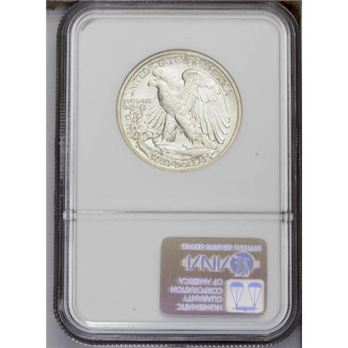 <B>1943-S<50C> MS66 NGC.</B></I> FS-010.5. Trumpet tail S. A lustrous light gold beauty with an unusually bold strike for an S-mint half dollar from World War II. The thumb and skirt lines lack absolute detail, but they come close. <BR><BR><B>Important notice:</B> Heritage usually auctions material at the rate of 200-250 lots per hour. On some occasions eBay Live bid software or the Internet may not be able to keep up with the pace of the auction. We recommend placing a realistic absentee bid now as insurance to avoid disappointment. Occasionally the auctioneer may eliminate or reject an eBay Live bid, and the auctioneer may also reopen a lot after the close of the eBay live bidding (usually because we missed an audience bid), and may reject your bid even if it shows you as the winning bidder. By bidding via eBay Live, you agree that Heritage may award the lot to another bidder at its sole discretion under the circumstances described above or any other reasonable circumstances. Since eBay bids are not shown to us until we open the lot on the floor, we treat those bids just like floor bids. In most cases the floor responds before the eBay bid is presented to us, due to Internet lag time, so for consistency we have made it a policy that floor bids are always considered first over tie eBay live bids. Also please note that all Heritage lots purchased through eBay Live carry a 20% Buyer's Premium. Please make sure you read the Terms and Conditions before you bid. This lot is being auctioned in conjunction with a live floor auction by Heritage Galleries & Auctioneers. All final auction and invoice information will be supplied by Heritage Galleries & Auctioneers, and all other information should be considered preliminary. Lot:3006 <BR><BR><B>Winning Notification and Billing:</B> After the FINAL session in this auction is complete, Heritage will send e-mail and snail mail invoices. This process normally takes several days. All final auction and invoice information will be supplied by Heritage Galleries & Auctioneers, and all other information should be considered preliminary. <BR><BR>This auction will be conducted on a live auction floor and over the Internet through eBay Live. If you choose to place an absentee bid, please take a moment to <font color='#0000ff'><u><a href='http://pages.ebay.com/liveauctions/help/before/laabsentee.html'>learn how eBay Live absentee bidding works</a></u></font><font color='#000000'>