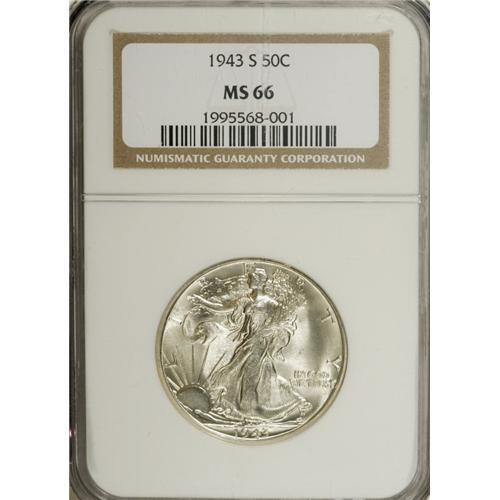 1943-S 50C MS66 NGC. Large S. FS-50-1943S-101. IN GOD