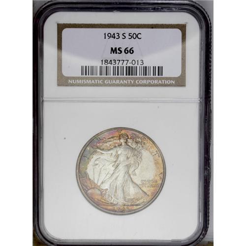 1943-S 50C MS66 NGC. Typically struck with smooth sati 1943-S[50C] MS66 NGC.