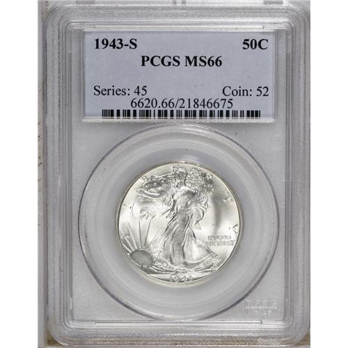 1943-S 50C MS66 PCGS. A slightly frosty piece that has