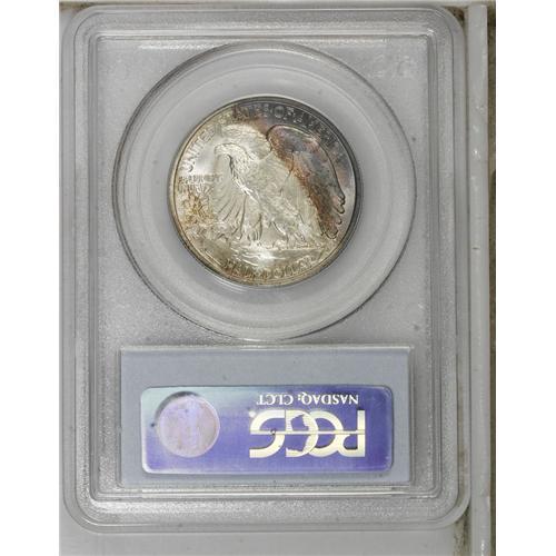 1943-S 50C MS66 PCGS. An arc of deep electric-blue, la