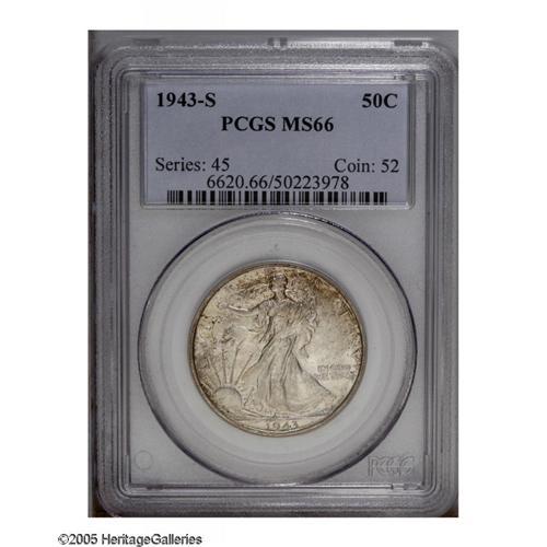 1943-S 50C MS66 PCGS. FS-010.5. Large S. Sharply struc 1943-S[50C] MS66 PCGS.
