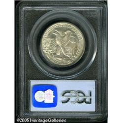 <B>1943-S 50C MS66 PCGS.</B></I> FS-010.5. Trumpet tail S. Original gold and pearl-gray colors endow the exquisite surfaces. The skirt lines are crisply struck on this lustrous representative, although the cheek and branch hand are typically defined. Lot:8142