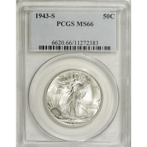 1943-S 50C MS66 PCGS. Highly lustrous with only a hand