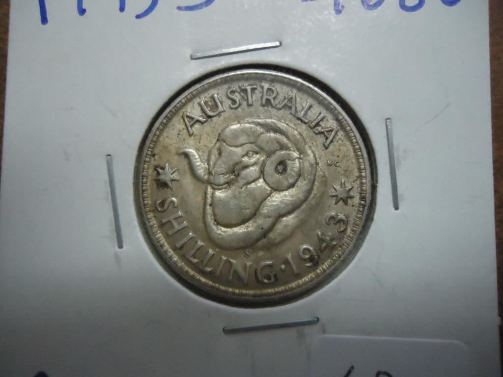 1943-S AUSTRALIA SILVER SHILLING .1680 OZ. ASW