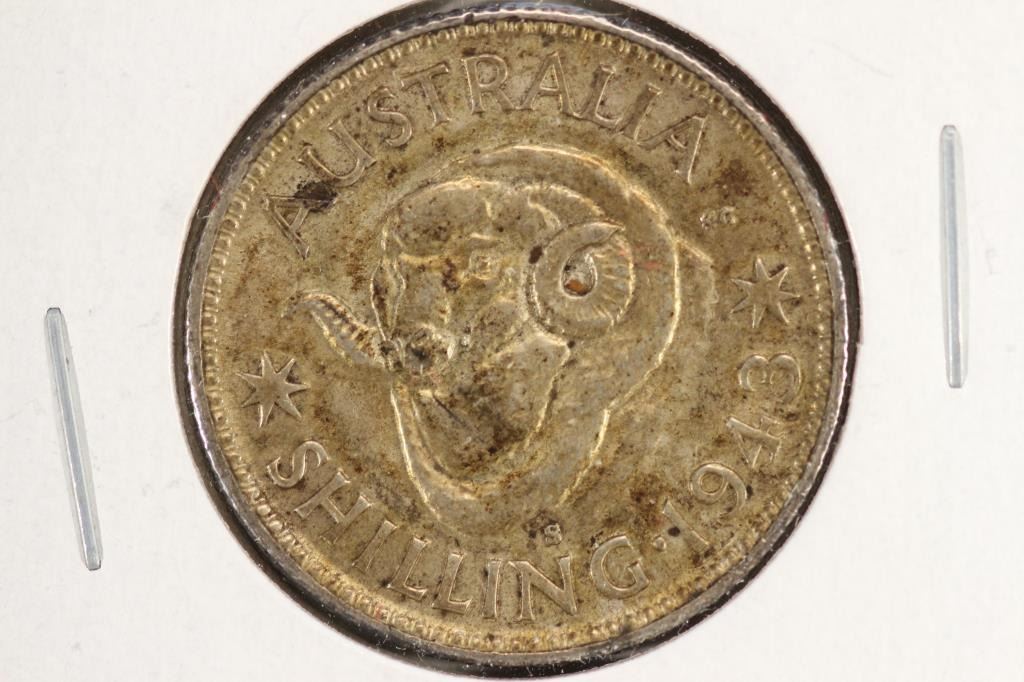 1943-S AUSTRALIA SILVER SHILLING .1680 OZ. ASW
