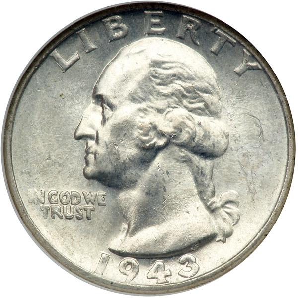 1943-S Double Die. NGC graded MS-64. The obverse letters are mostly doubled.
