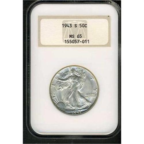 <b>1943-S Liberty Walking Half Dollar. NGC graded MS65.</b> The surfaces are glossy and radiant. There is no toning. Starting from the principal that most 1943-S half dollars were poorly made, this is a nicely struck example exhibiting fine detail to all the high points, barring only the hand area plus the upper skirt lines in Liberty's dress <b>(PCGS # 6620)</b>