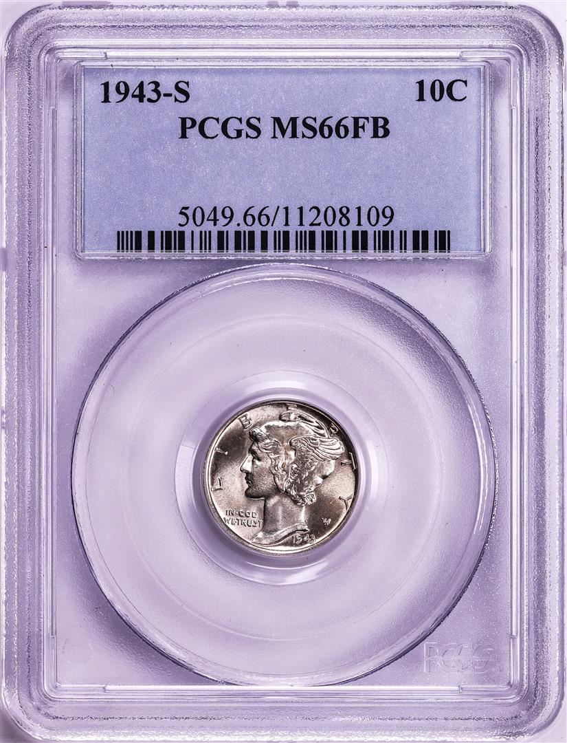 One 1943-S Mercury Dime Coin PCGS MS66FB. PCGS Graded.