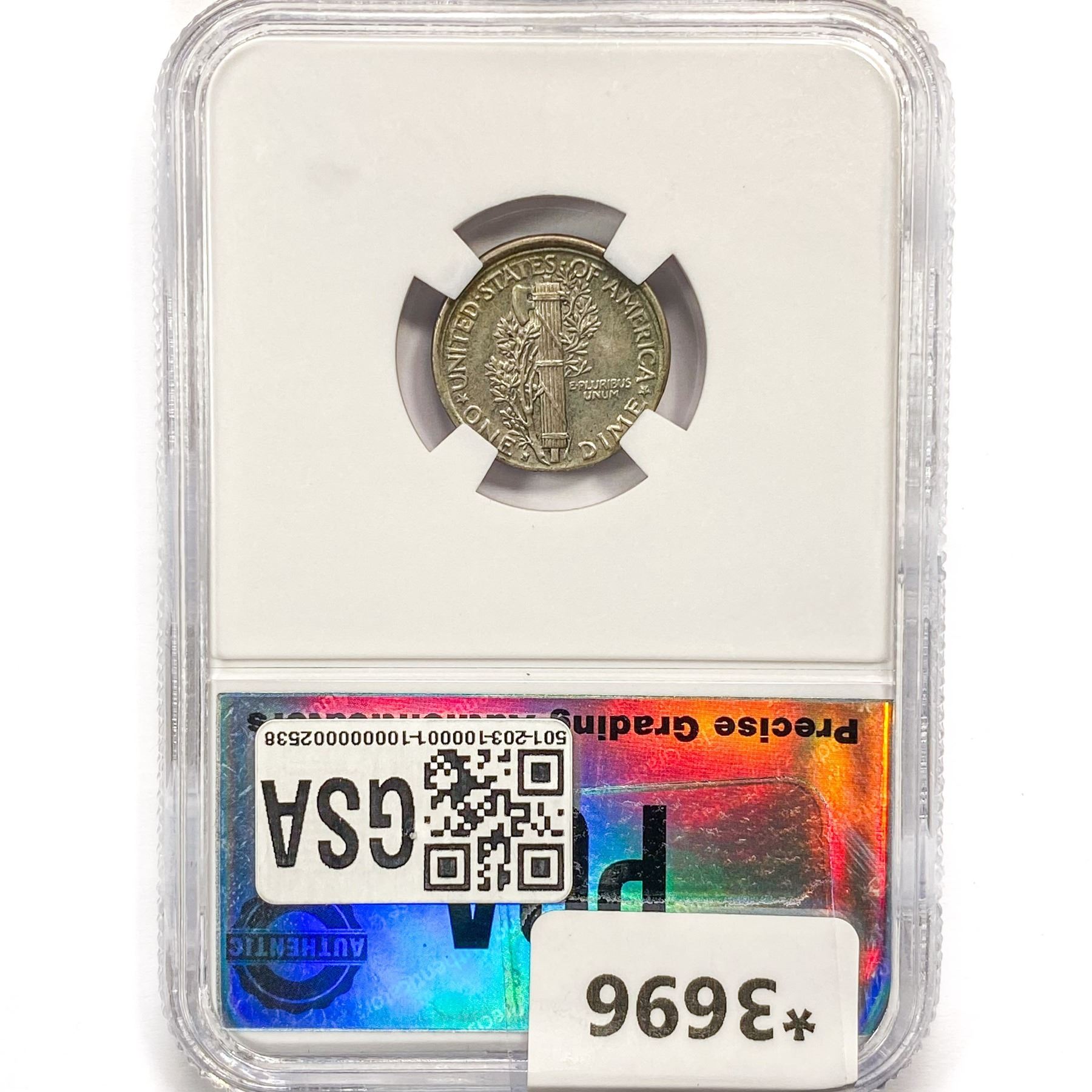 COINS AND CURRENCY LISTED IN GSA’S CATALOG AS GRADED AND ENCAPSULATED BY PCGS, NGC, ANACS, ICG, PCGS CURRENCY, PMG, PCGS BANKNOTE GRADING, CMC OR ANY OTHER THIRD-PARTY GRADING SERVICE ARE LIKEWISE SOLD “AS-IS” EXCEPT AS EXPRESSLY SET FORTH HEREIN. ALL THIRD-PARTY GRADING SERVICE GUARANTEES, INCLUDING AUTHENTICITY, ARE THE SOLE RESPONSIBILITY OF THE THIRD-PARTY GRADING SERVICE AND NOT WARRANTIES OR GUARANTEES OF GSA. BIDDERS SHOULD CONTACT THESE THIRD-PARTY GRADING SERVICES DIRECTLY WITH RESPECT TO ANY CLAIMS OR QUESTIONS THEY MAY HAVE CONCERNING THEIR GUARANTEES AND WARRANTIES. BIDDERS ACKNOWLEDGE AND AGREE THAT AUCTIONEER IS NOT BOUND BY OR LIABLE FOR ANY OPINION OR CERTIFICATION BY ANY THIRD-PARTY GRADING SERVICE. REMOVAL OF A PRODUCT FROM ITS PROTECTIVE CASING OR HOLDER OR ALTERATION OF ANY COIN HOLDER WAIVES ALL RIGHTS CONCERNING THE PRODUCT CONTAINED THEREIN.