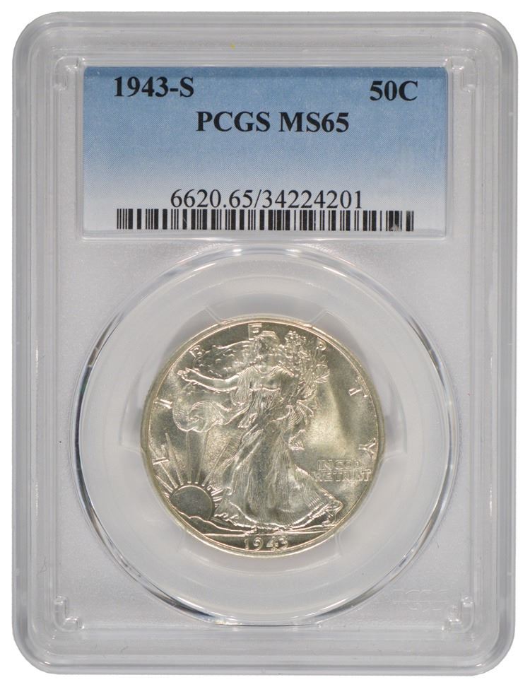 One 1943-S Walking Liberty Half Dollar Coin PCGS MS65.