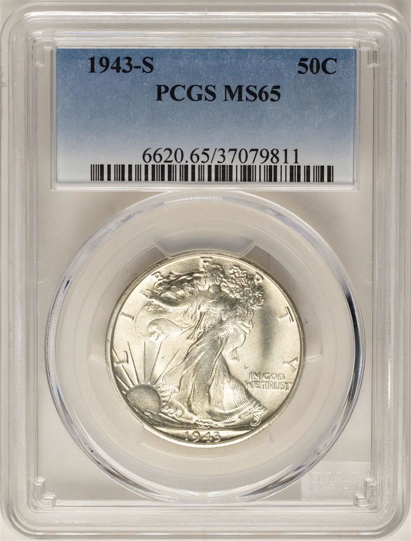 One 1943-S Walking Liberty Half Dollar Coin PCGS MS65. PCGS Graded.