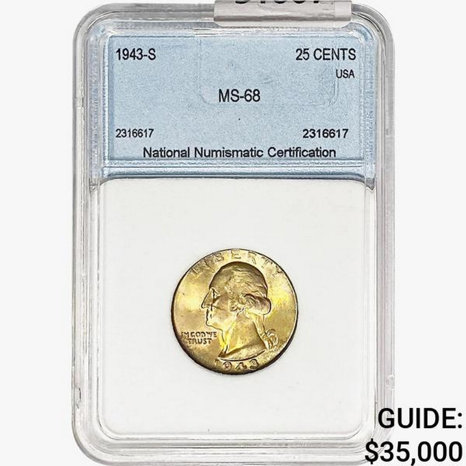 1943-S Washington Silver Quarter NNC MS68