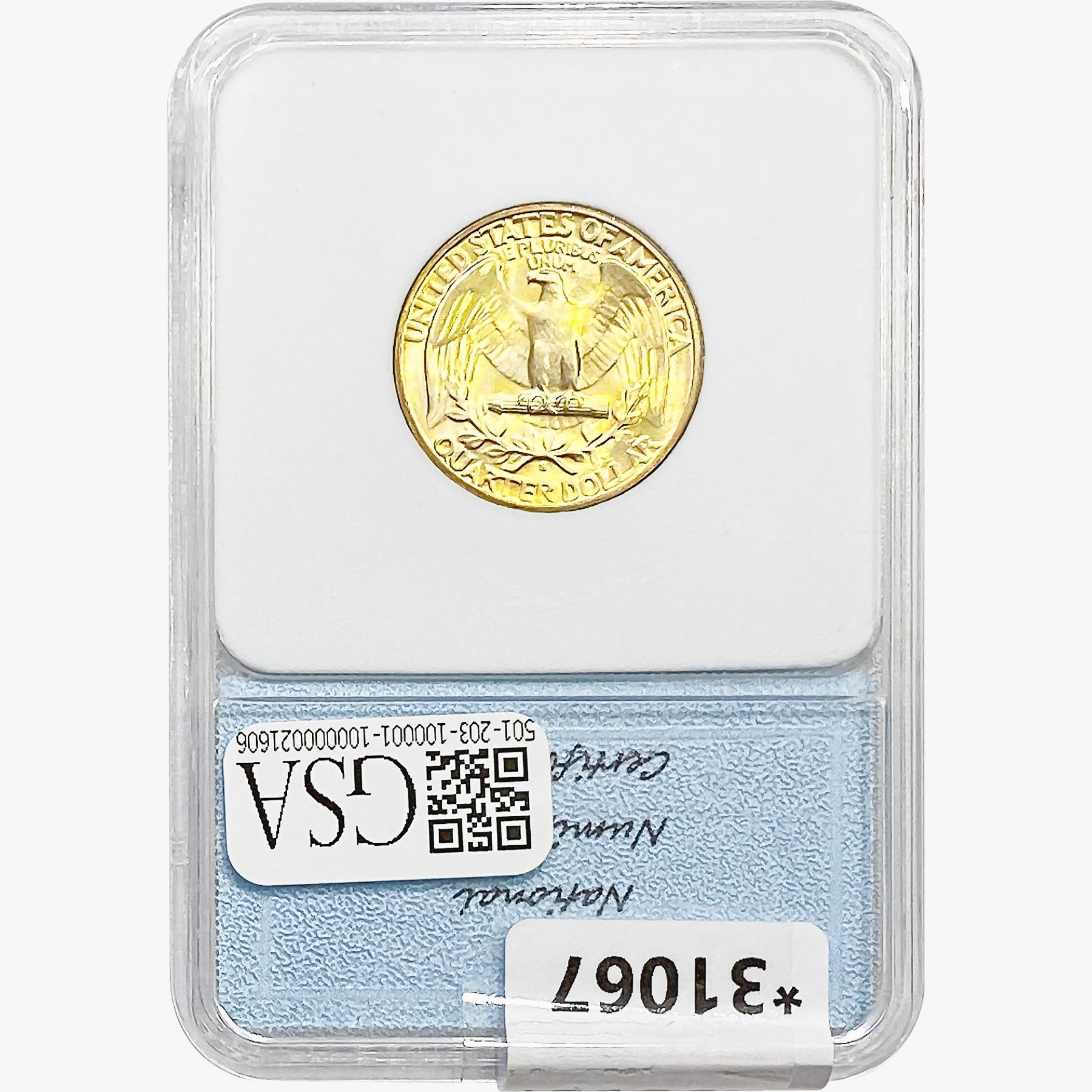 h. Since GSA cannot examine encapsulated coins or notes, they are sold “AS IS” without GSA’s grading opinion, and may not be returned for any reason. GSA shall not be liable for any patent or latent defect or controversy pertaining to or arising from any encapsulated Product. In any such instance, Bidder’s remedy, if any, shall be solely against the service certifying the Product.