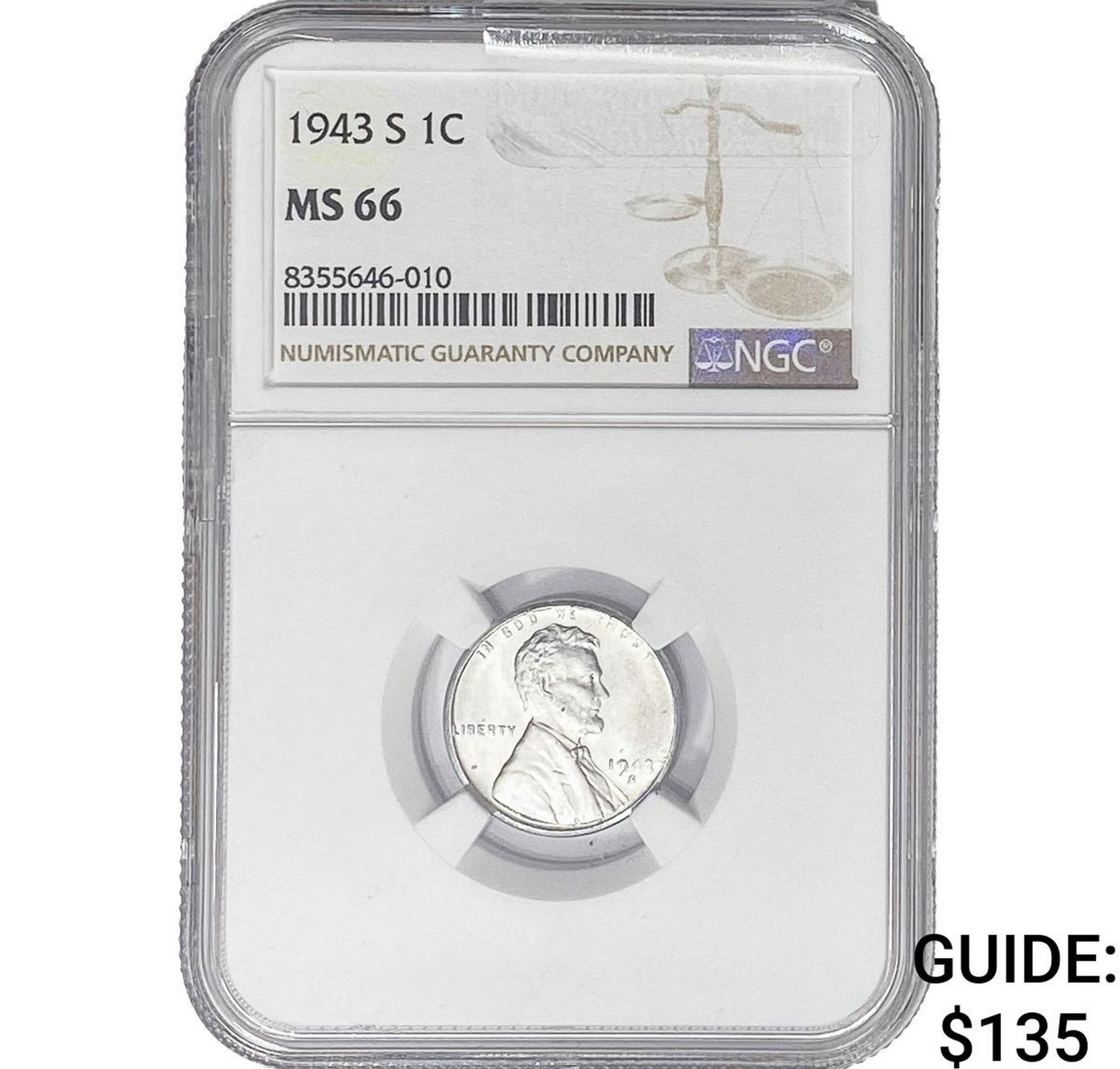 1943-S Wheat Cent NGC MS66