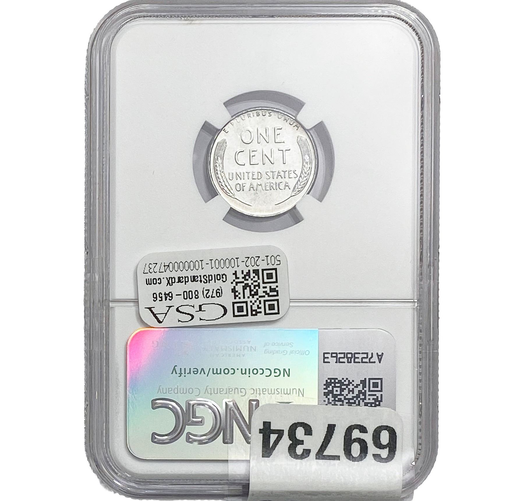 e. Coins sold referencing a third-party grading service are sold “AS IS” without any express or implied warranty, except for a guarantee by GSA that they are genuine. Removal or alteration of the holder, voids all of Bidder’s claims concerning that Product. Certain warranties may be available from the grading services and Bidders are referred to them for further details: Numismatic Guaranty Corporation (NGC), PO Box 4776, Sarasota, FL 34230, www.ngccoin.com/services/writtenguarantee.asp; Professional Coin Grading Services (PCGS), PO Box 9458, Newport Beach, CA 92658, www.pcgs.com/guarantee.html; ANACS, 6555 S. Kenton St., Ste. 303, Englewood, CO 80111; and Independent Coin Grading Co. (ICG), 7901 East Bellview, Ave., Suite 50, Englewood, CO 80111.
