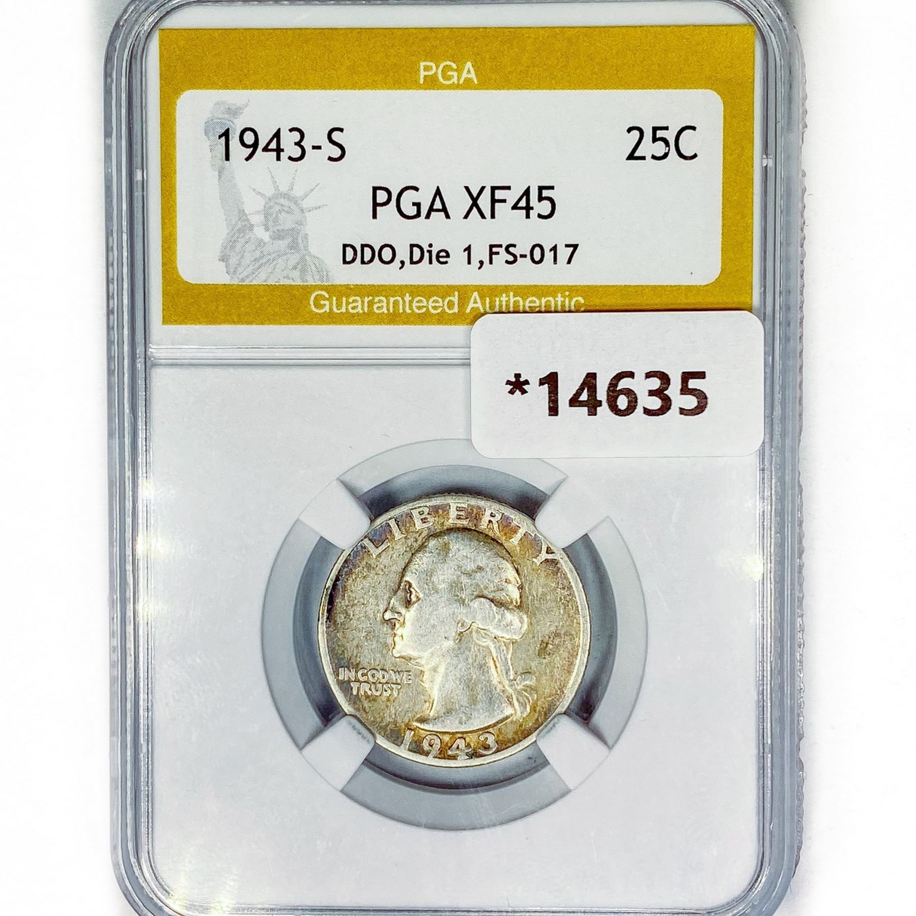 1943-S Wheat Quarter PGA XF45 DDO, Die 1, FS-017