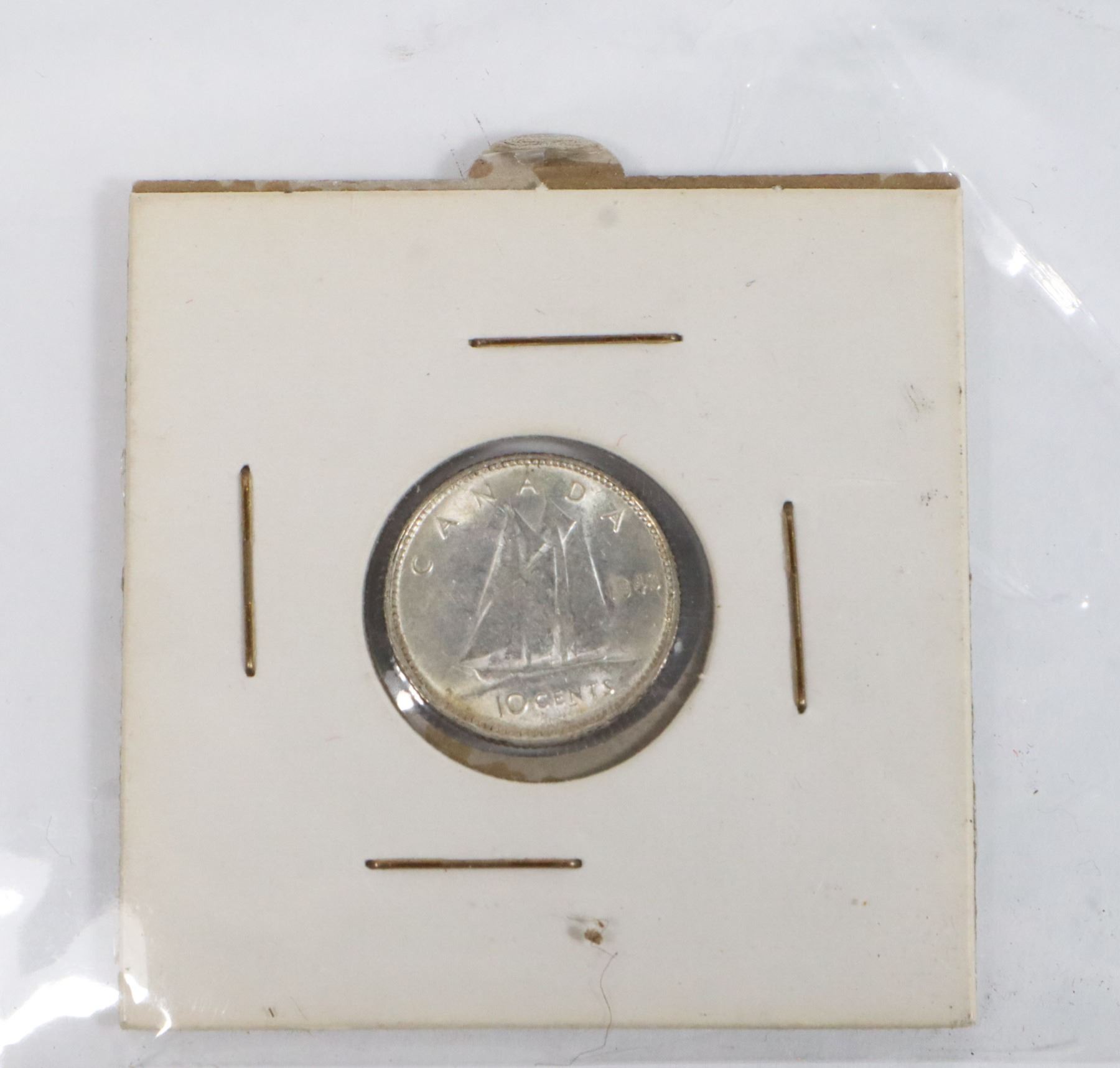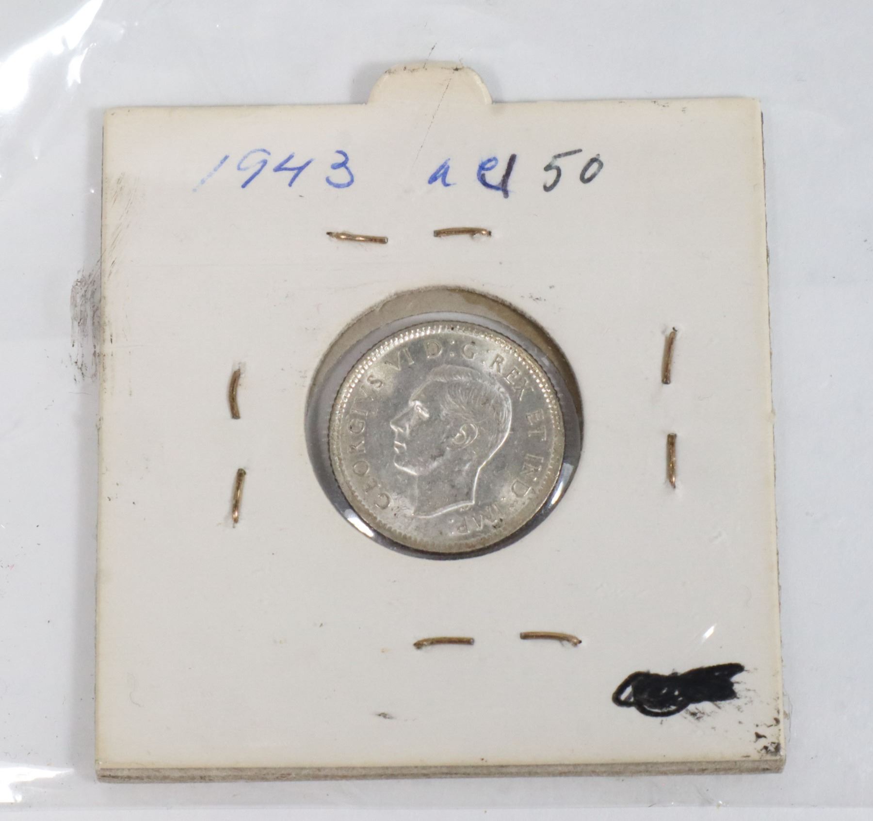 1943 SILVER CANADA 10 CENTS COIN, AU CONDITION