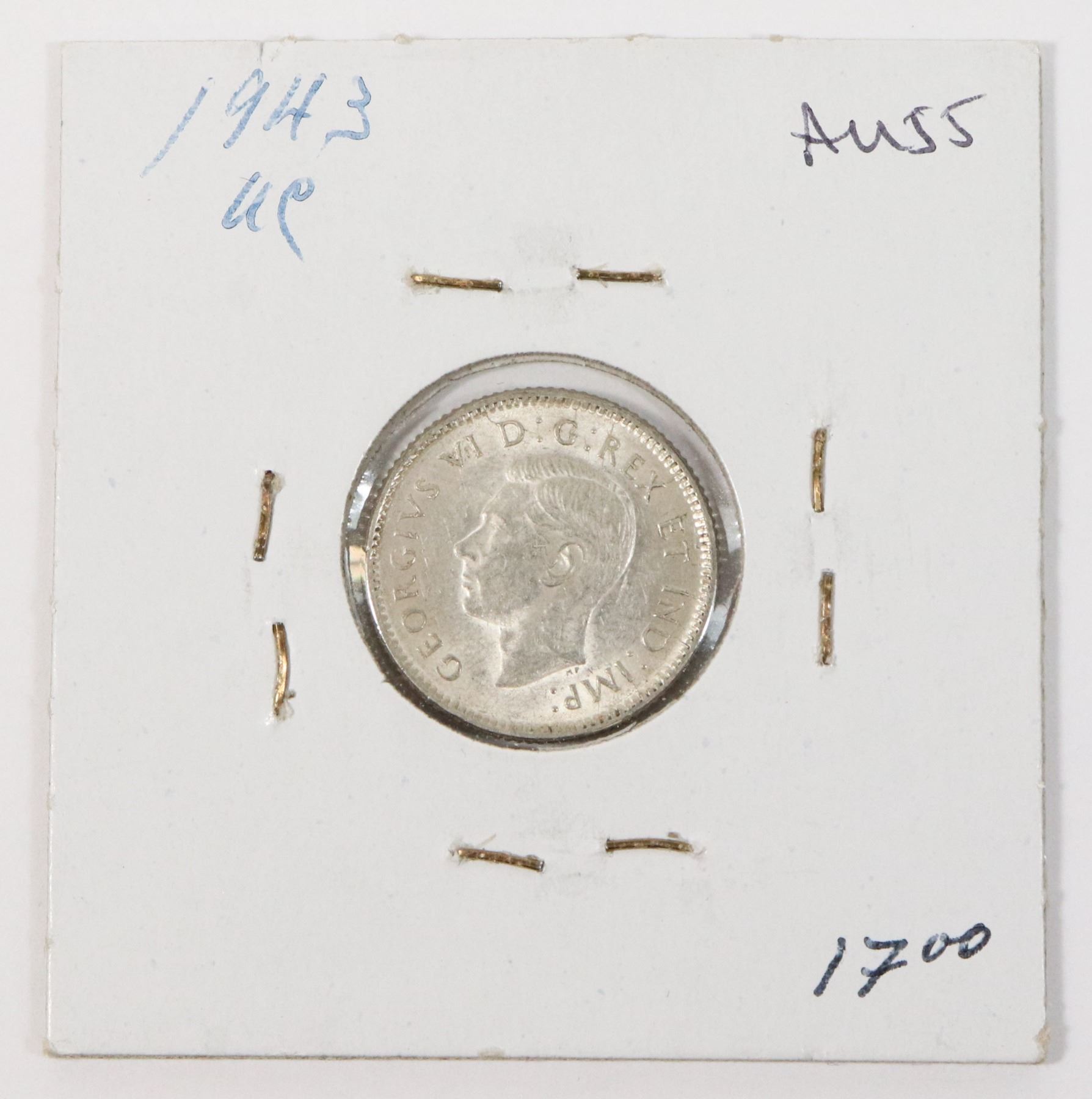 1943 SILVER CANADA 10 CENTS COIN, AU