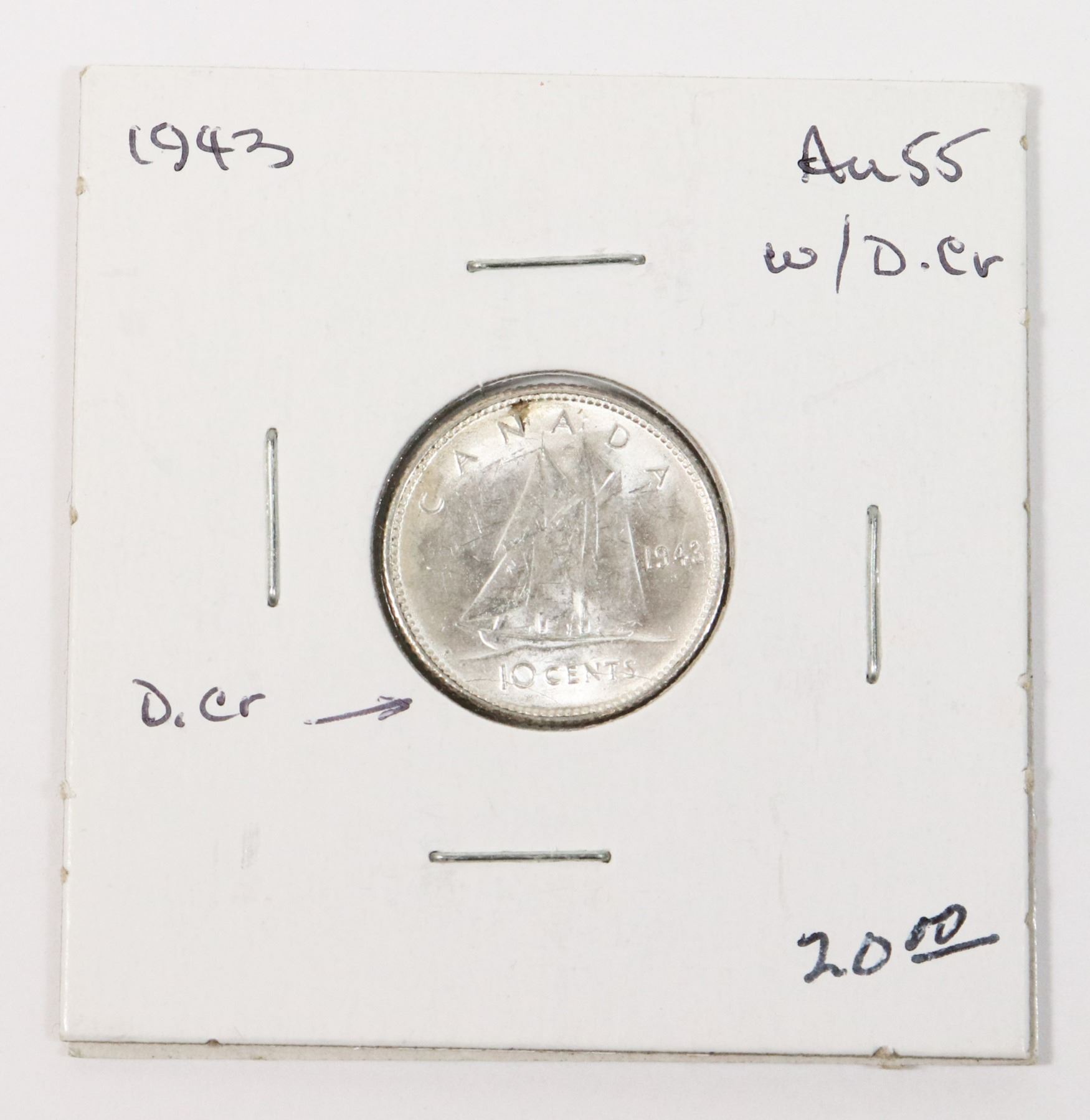 1943 SILVER CANADA 10c DIE CRACKS ERROR COIN, BU