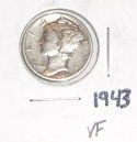 1943 SILVER MERCURY DIME *NICE VERY FINE-EARLY DIME!! ***Coin, Currency & All Items Listed in this auction - Grades, Conditions and Values are not Safe Deposit Coins LLC Responsibilty. Grades, Condition and Values are determined by Consigner(s) & Buyers ONLY***