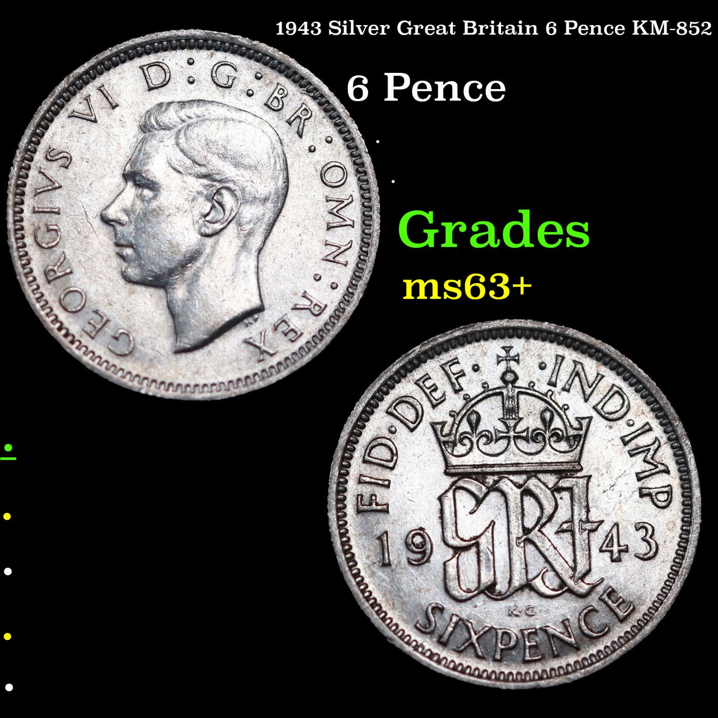 1943 Silver Great Britain 6 Pence KM-852 Grades Select+ Unc