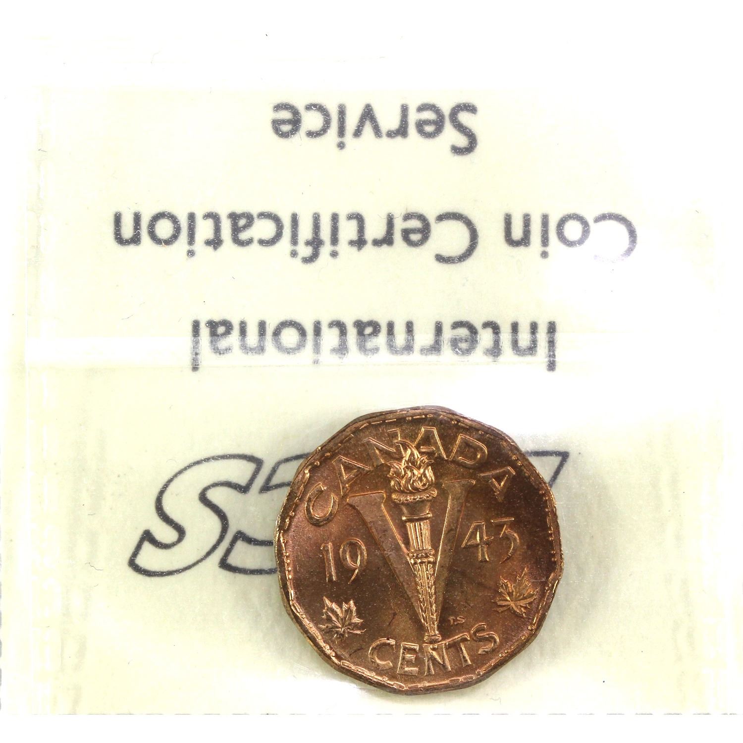 1943 Tombac Canada 5-cent ICCS Certified MS-65