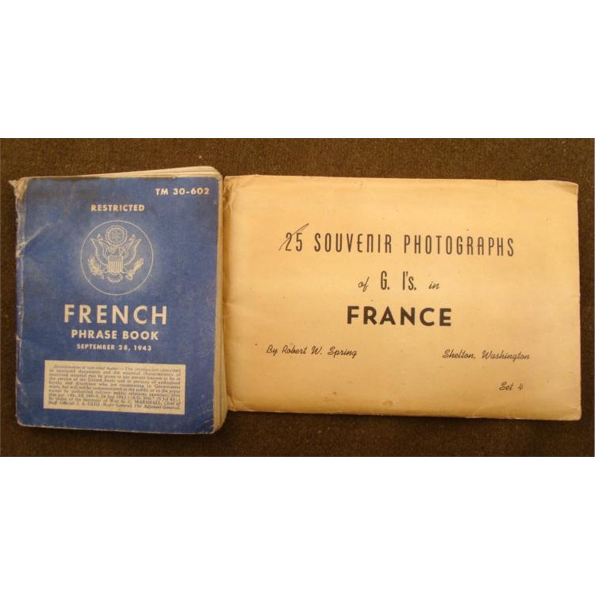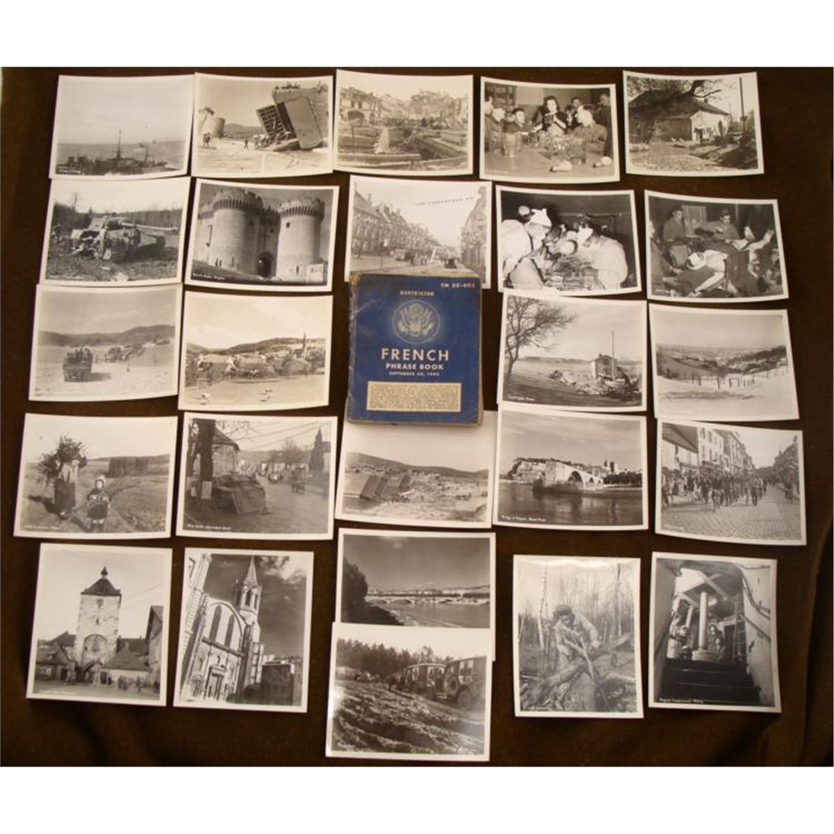 OFFERED HERE IS A U.S. GI'S PHRASE BOOK FOR FRANCE & 25 PHOTOS OF GERMAN CAPTURED EQUIP, ETC. * AFTER THE LIBERATION OF FRANCE THESE ITEMS WERE PUBLISHED: A U.S. GI FRENCH PHRASE BOOK (1943) AND 25 4X5" PHOTOS OF THE WAR IN FRANCE. THE BOOK INCLUDED CAPTURED NAZI TANKS, WAR CASUALTIES, ETC. *