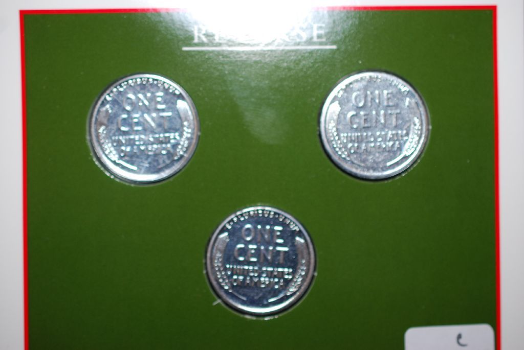 1943 US Wartime Steel Cent Coin Set With History; Lot of 3 Coins; EST. $3-6