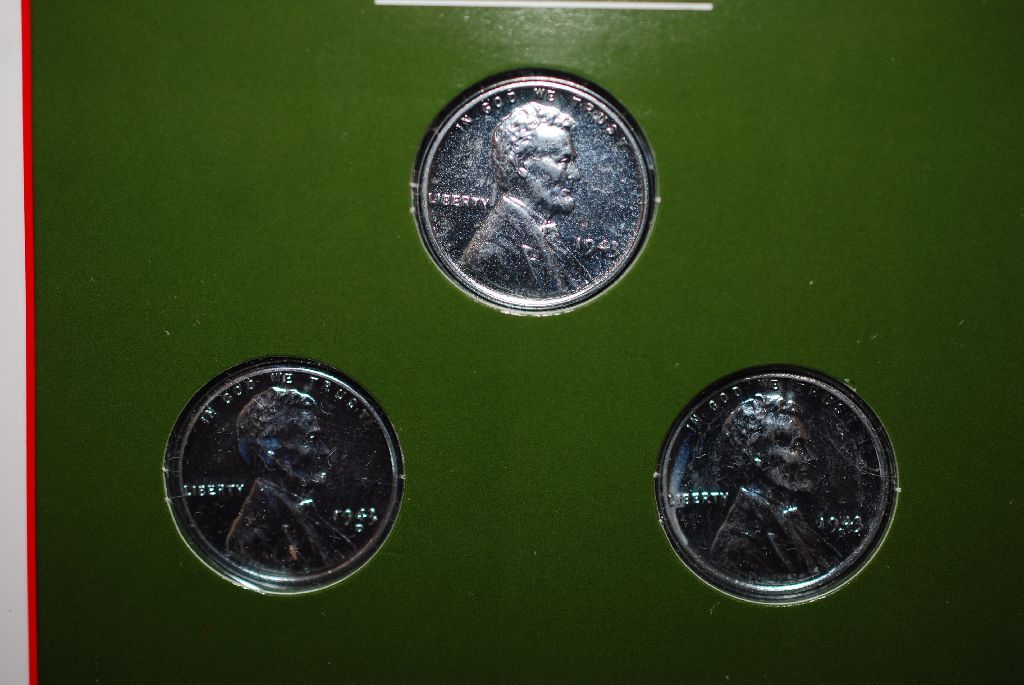 1943 US Wartime Steel Cent Coin Set With History; Lot of 3 Coins; EST. $3-6