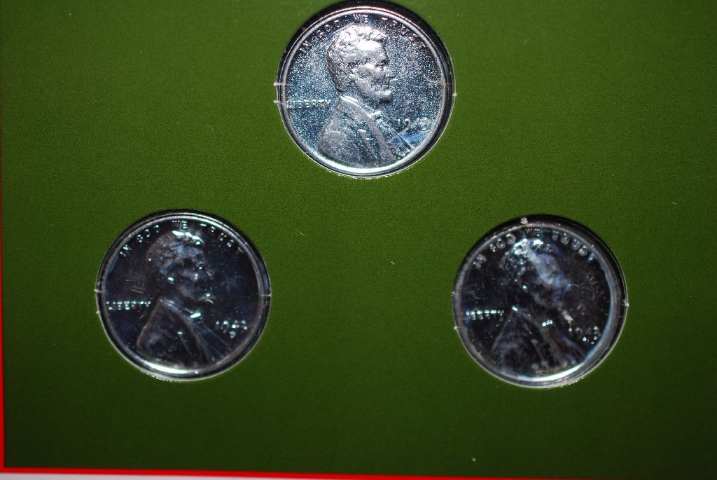 1943 US Wartime Steel Cent Coin Set With History; Lot of 3 Coins; EST. $3-6