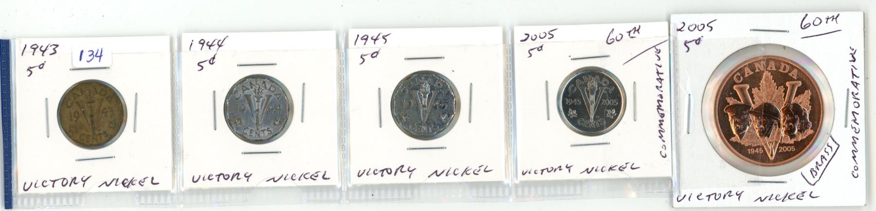 1943 Victory Nickels (brass) AND 1944,1945 and 2005(60th anniversary) and 2005 Large copper and 60th anniversary