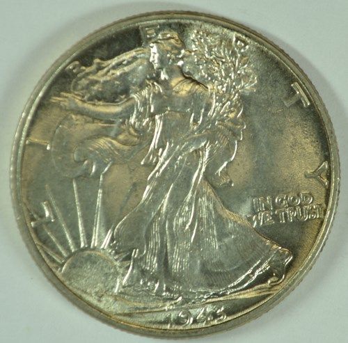 1943 WALKING LIBERTY HALF DOLLAR,M MS-64 BEAUTIFUL WHITE