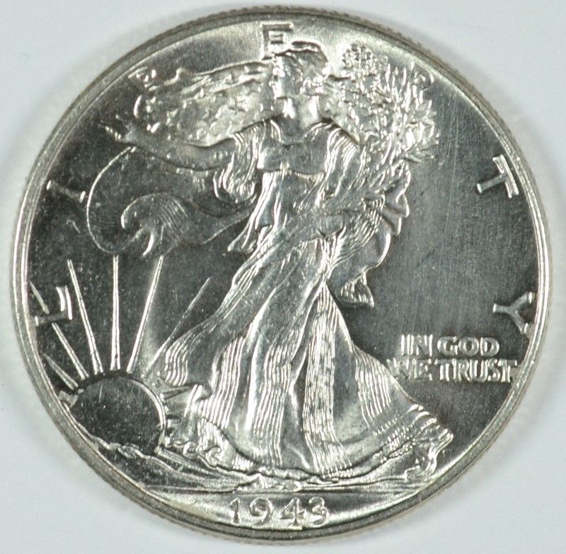 1943 WALKING LIBERTY HALF DOLLAR, MS-64+ BLAST WHITE