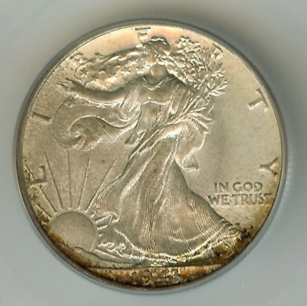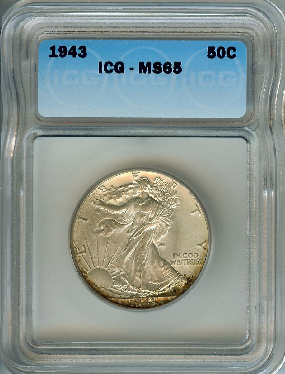 1943 WALKING LIBERTY SILVER 50 CENTS ICG MS65