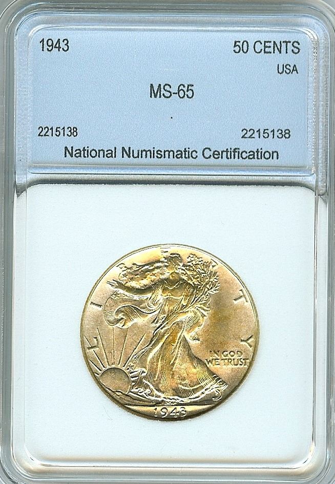 1943 WALKING LIBERTY SILVER 50 CENTS NNC MS-65