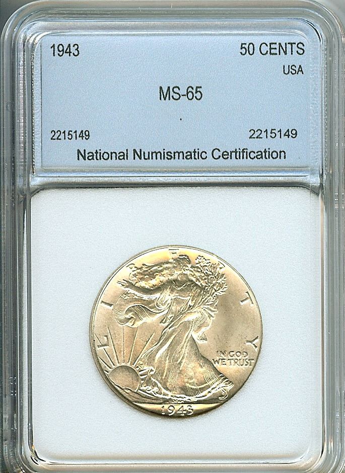 1943 WALKING LIBERTY SILVER 50 CENTS NNC MS-65