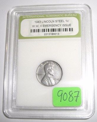 1943 WORLD WAR II-STEEL PENNY *EMERGENCY ISSUE* LINCOLN WHEAT PENNY *CERTIFIED BY INB-INTERNATIONAL NUMISMATIC BUREAU* NICE EARLY PENNY!! COIN CAME OUT OF SAFE!! ***Coin, Currency & All Items Listed in this auction - Grades, Conditions and Values are not Safe Deposit Coins LLC Responsibilty. Grades, Condition and Values are determined by Consigner(s) & Buyers ONLY