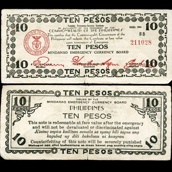 1943 WW2 Guerrilla Rebel Philippines 10P Note Mindinao (CUR-007283)