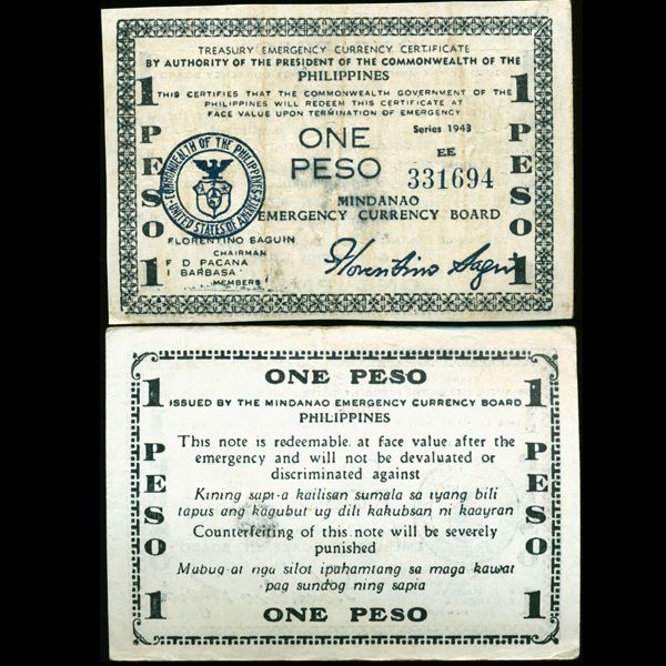 1943 WW2 Guerrilla Rebel Philippines 1P Note Mindinao (CUR-07208)