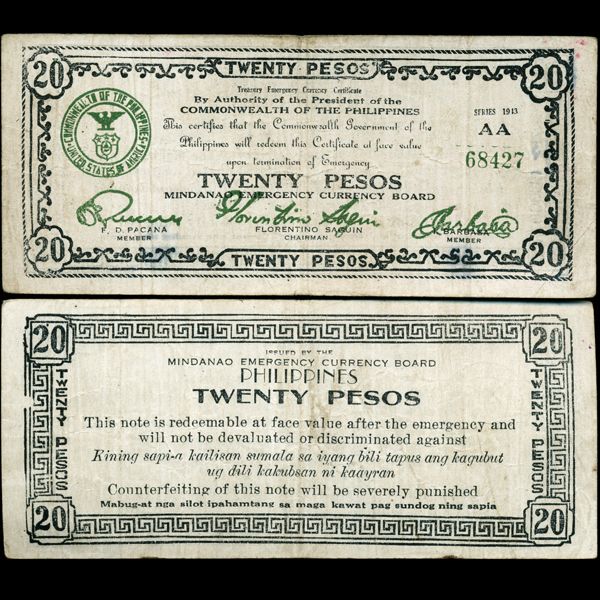 1943 WW2 Guerrilla Rebel Philippines 20P Note Mindinao (CUR-007304)