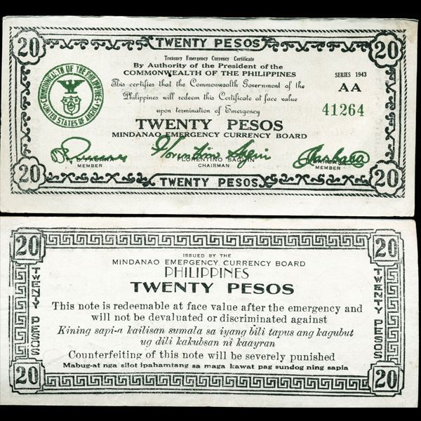 1943 WW2 Guerrilla Rebel Philippines 20P Note Mindinao (CUR-07305)