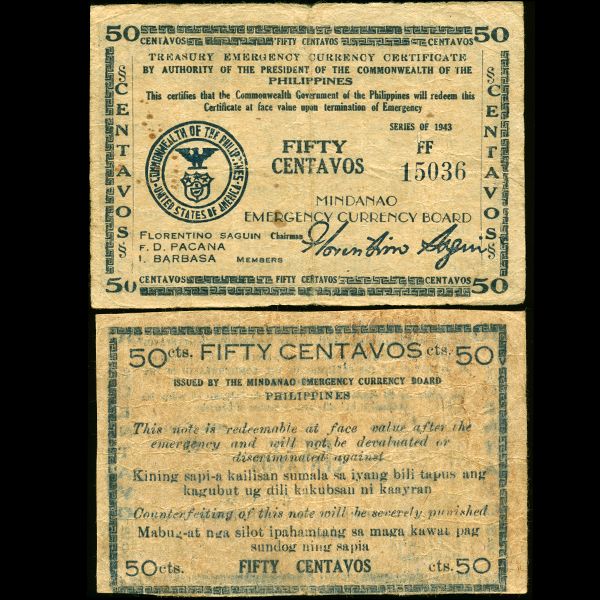 1943 WW2 Guerrilla Rebel Philippines 50c Note Mindanao (CUR-007187)