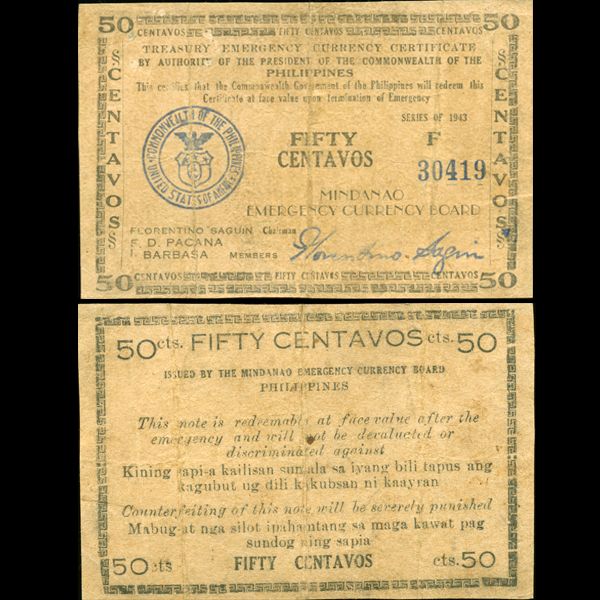 1943 WW2 Guerrilla Rebel Philippines 50c Note Mindanao (CUR-007189)