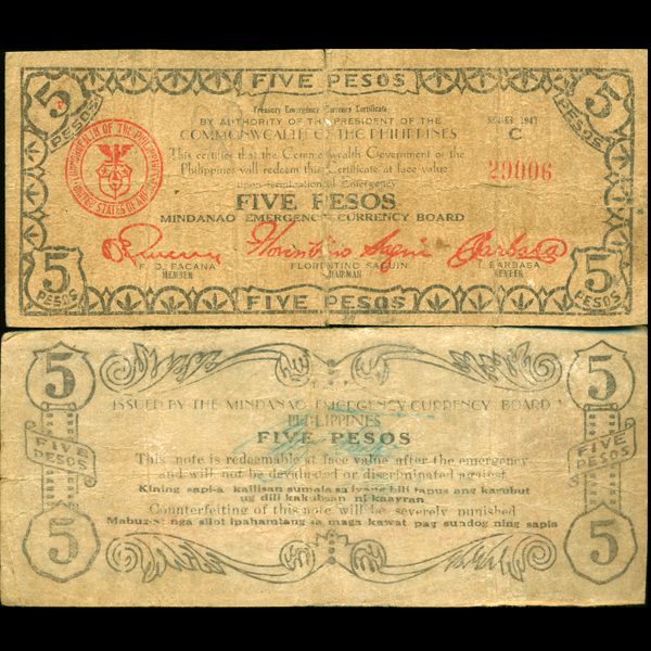 1943 WW2 Guerrilla Rebel Philippines 5P Note Mindinao (CUR-07260)