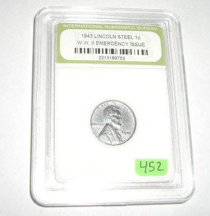 1943 WWII STEEL LINCOLN WHEAT PENNY CERTIFIED BY INB *EMERGENCY ISSUE* SERIAL # 2213189753!! COIN CAME OUT OF ESTATE SAFE!! ***Coin, Currency & All Items Listed in this auction - Grades, Conditions and Values are not Safe Deposit Coins LLC Responsibilty. Grades, Condition and Values are determined by Consigner(s) & Buyers ONLY
