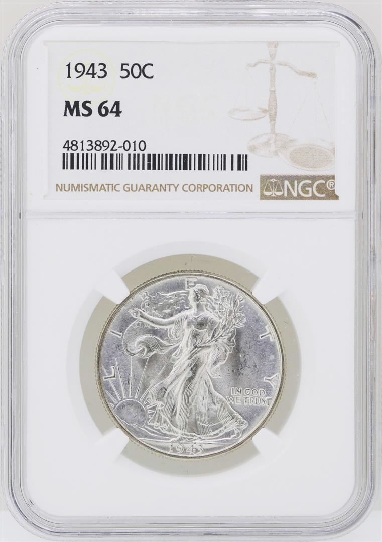 One 1943 Walking Liberty Half Dollar Coin NGC MS64. NGC Certified.