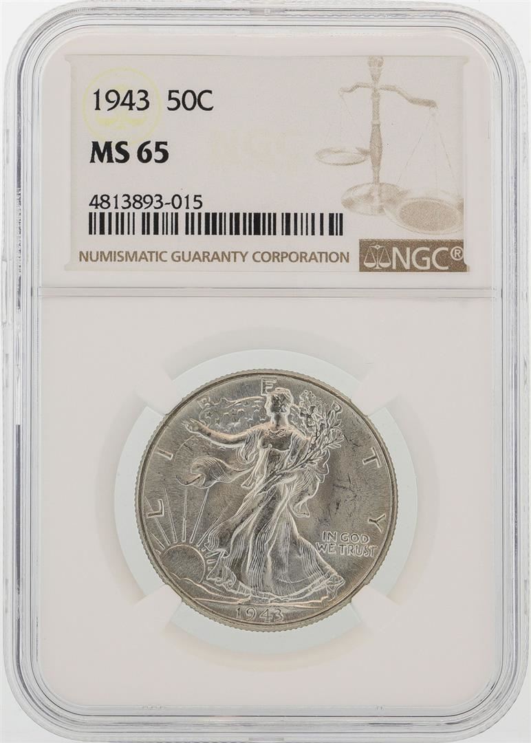 One 1943 Walking Liberty Half Dollar Coin NGC MS65. NGC Certified.