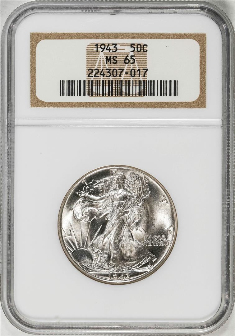 One 1943 Walking Liberty Half Dollar Coin NGC MS65. NGC Certified.